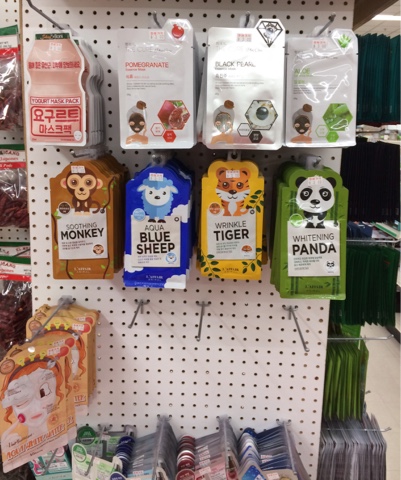 Then on the final fourth side of the display, there was a healthy selection of packs from Fancy (top--these have also been sold at Forever21, including my local store), animal themed masks (middle), a couple of DearPacker masks with a random SNP tiger character mask, too.